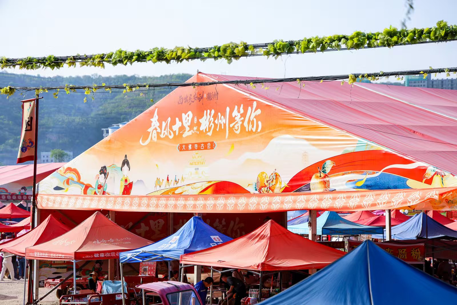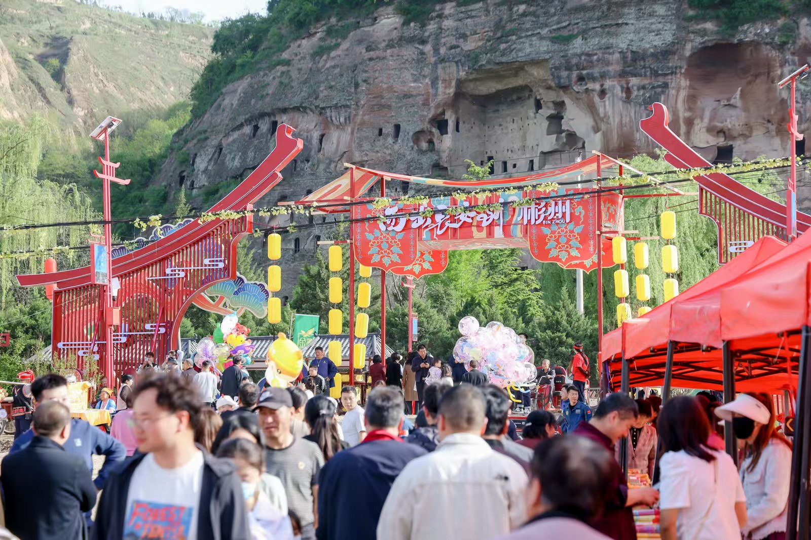 4月23日上午,2026年彬州市大佛寺民俗暨文旅推介促消费活动在彬州大佛寺景区隆重启幕。本次活动以“西出长安到彬州”为主题,深度融合世界文化遗产大佛寺石窟与省级非物质文化遗产大佛寺“三月八”民俗活动,在传统祈福、民俗展演、非遗体验、商贸市集的基础上,融入盛唐巡游、夜间灯光秀、沉浸式路演等新潮元素,全面激活春季文旅消费,擦亮彬州文旅品牌。