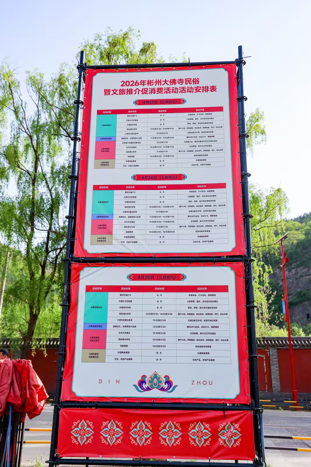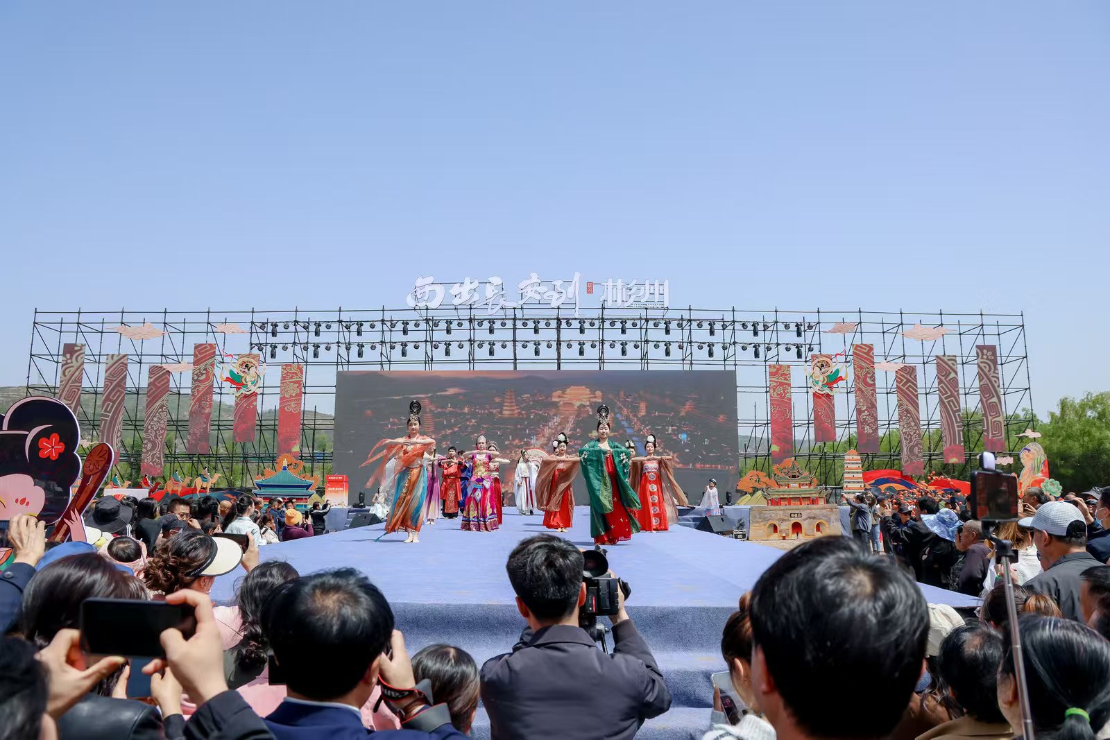 本次活动为期3天(4月23日—4月25日,农历三月初七至初九),在大佛寺景区、古道公园及周边区域举办,每日推出盛唐巡礼、丝路民俗大巡游、秦腔名家献艺、陕西非遗等沉浸式演出,全天好戏不断;打造丝路印象?美味大集,还原古丝路贸易场景,摊主化身丝路商贩沉浸式互动,同时搭建丝路光影互动空间,以山体投影、灯影巡游打造可触摸的千年丝路画廊,让科技点亮传统文化。