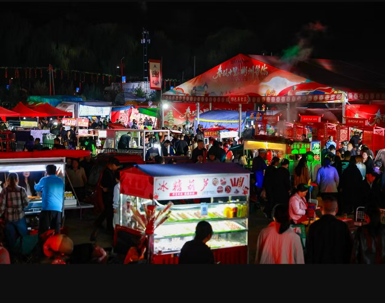 非遗传承创新破圈,现场设立非遗工坊,彬州旋木、刺绣、剪纸等传承人现场授艺,推出多种潮玩文创,让年轻群体近距离感受非遗魅力;美食与好物市集同步开启,汇聚彬州御面、煎汤面等地道风味,苹果、柿子醋等特色农产品,构建“吃住行游购娱”一站式消费场景。
