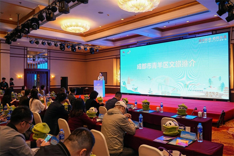 推介会上,青羊区与江北区分别就各自文旅资源进行了精彩推介。青羊区围绕“天府文化核心区”的定位,向西安市民和文旅业界重点推介了祠堂街艺术街区、蜀锦织绣博物馆、国际非遗博览园等一系列文旅消费新场景,系统展示了区域内“古今融合、文旅共生”的发展新模式。此次推介不仅生动呈现了青羊区深厚的历史底蕴与文化魅力,更传递出青羊以文塑旅、以旅彰文的坚定决心,为推动成渝地区与西北区域文旅协作和高质量发展注入新动能。