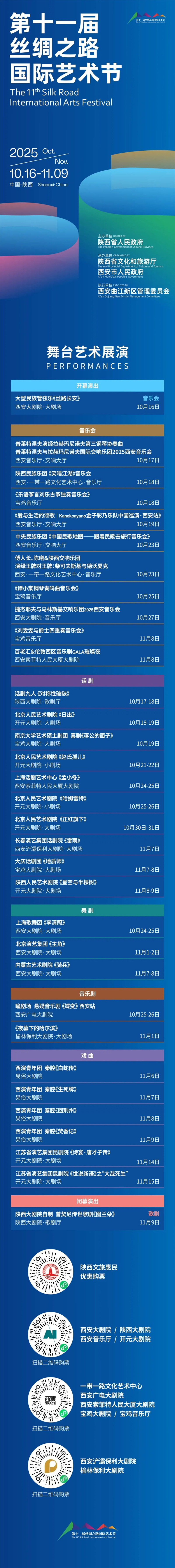 剧目展演单元则精心策划了三大主题:“丝路荟聚”将呈现俄罗斯、土耳其等丝路沿线国家的多样艺术风貌;“中国力量”将集中展示包括北京人艺经典话剧《赵氏孤儿》《哈姆雷特》《日出》,上海歌舞团舞剧《李清照》及内蒙古艺术剧院《骑兵》在内的国内顶尖院团力作;“在地文化”则重点推介陕西本土院团的创新成果,西演青年团的秦腔《白蛇传》《生死牌》等系列戏曲以及陕西交响乐团音乐会将展现浓郁的地域特色。