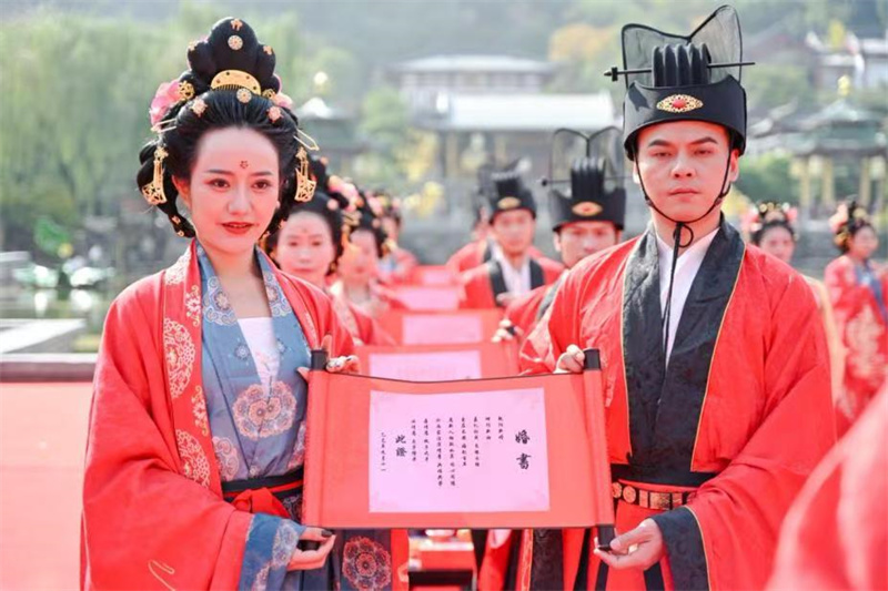 西安市作家协会副主席杨莹表示,这次活动将华服、唐宫、婚典、诗词意境融为一体,营造了一个可感、可触、可参与的“唐诗现场”,“它让写在纸上的诗句,变成了新人身上的华服、所处的宫阙、耳边的誓约。这种体验式的文化传播,比单纯的文字阅读更具感染力和传播力。”