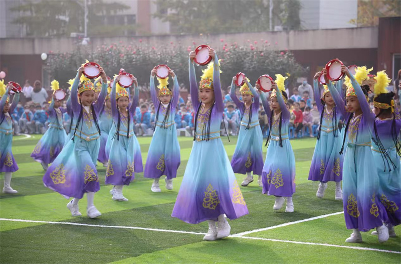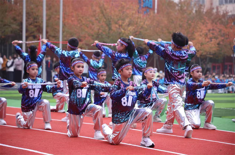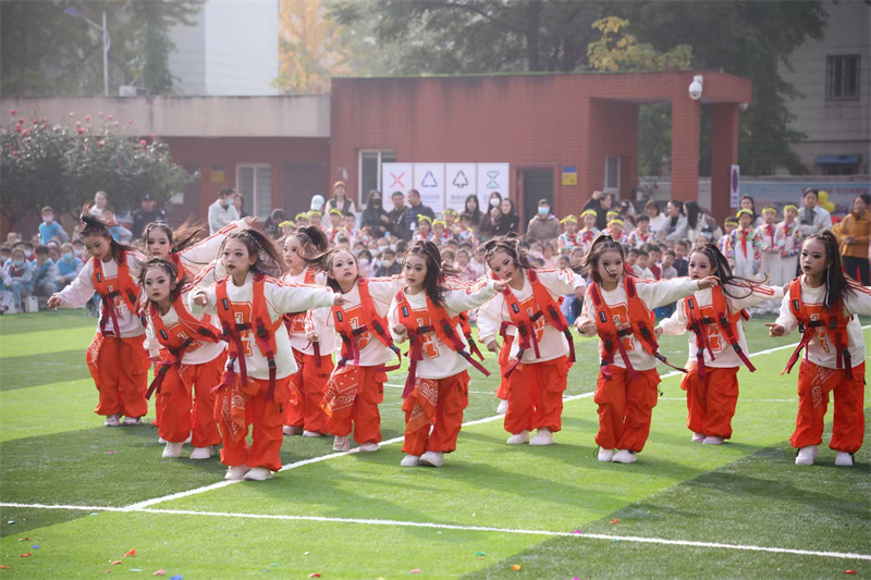 开幕式表演环节精彩不断:南小小舞团带来的民族舞蹈《维爵》,啦啦操校队带来的《flow city》舞出了少年儿童的蓬勃朝气与阳光自信。西安体育学院的大学生们带着对童年的美好祝福,用充满青春气息的健身操舞和武术表演,为大家带来了传统与现代结合的视听新体验。温情上演的亲子节目生动诠释了家校共育的深厚力量。绳速体育团队带来的花样跳绳表演,则将体育与艺术完美融合,编织出令人惊叹的视觉盛宴。