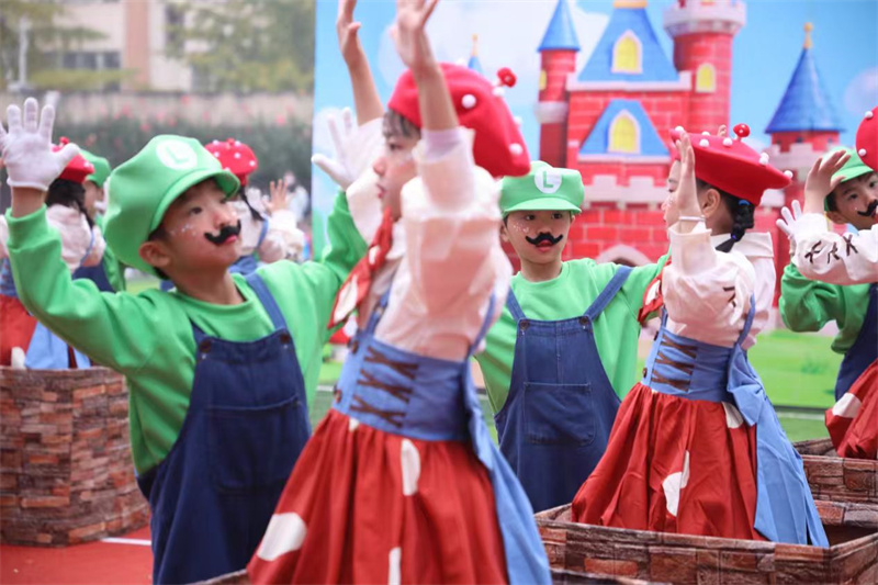 随后,各年级及特色方阵依次精彩亮相。一年级萌娃手持花球彩带,笑容天真烂漫;二年级“马里奥”方阵充满童趣创意;三年级代表队则以“绳采飞扬,跃动梦想”为主题,手持跳绳,展现出蓬勃朝气。啦啦操校队、南小小舞团、足球方阵、跳绳方阵等特色队伍的展示,充分体现了学校健康第一、“五育并举”、注重学生全面发展的教育成果。